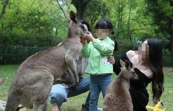 ▲游客与袋鼠互动 图据上海野生动物园公众号
