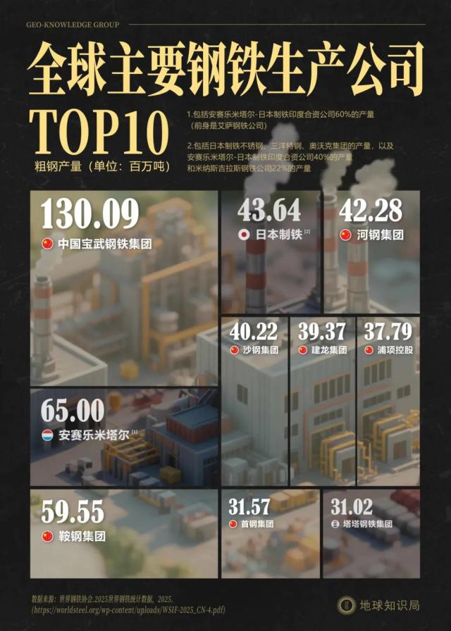 3、《2024 年全球 50 大钢企产量排行榜出炉》