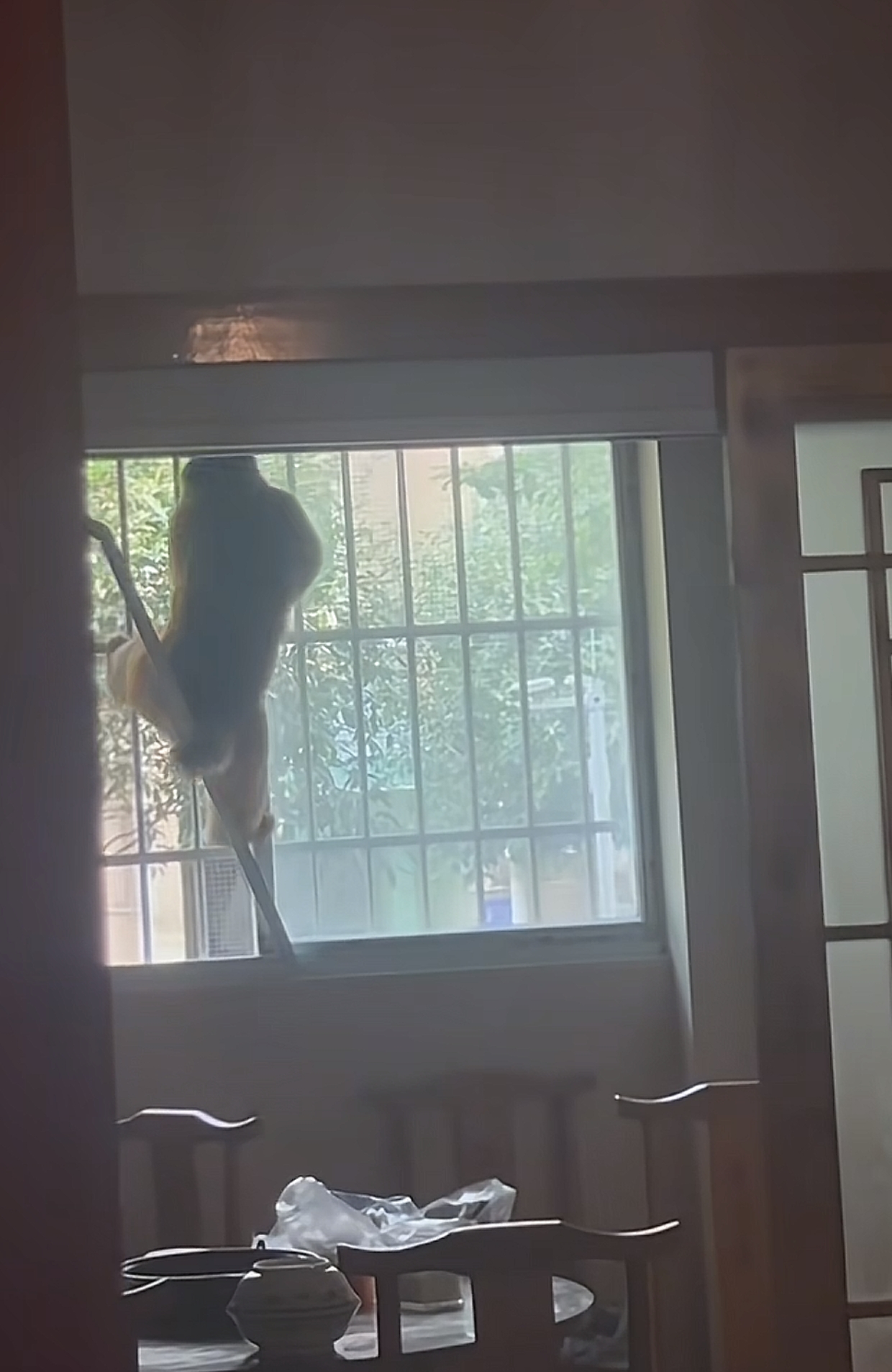 猴子在餐馆窗户攀爬(视频截图)