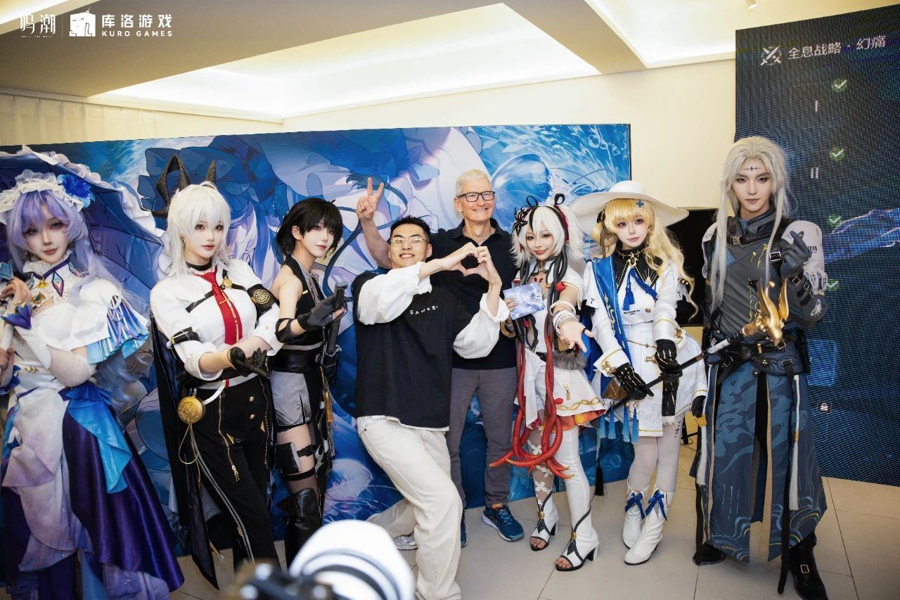 去年,库洛游戏开发的《鸣潮》上线,曾被外界视为有望比肩《原神》的二游,依据之一是其5.5亿元的年均研发成本。运营一年以来,虽然体量尚不及《原神》,但其声量已经不小。本地媒体无不骄傲地提及,TGA老板曾转发《鸣潮》宣传片,苹果CEO库克甚至亲临库洛游戏现场,并点赞“无与伦比的体验”。